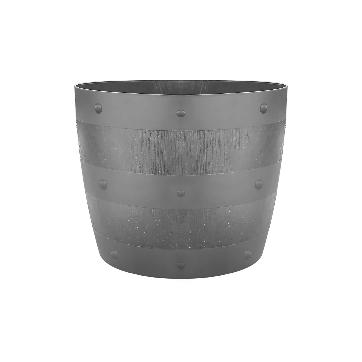 Decorative barrel shaped plant pot.