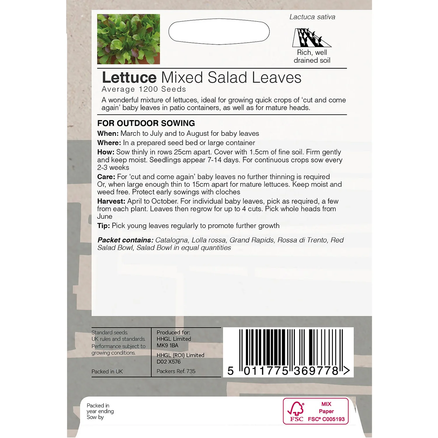 - Ideal for growing quick crops of ‘cut and come again’ baby leaves in patio containers, as well as for mature heads.