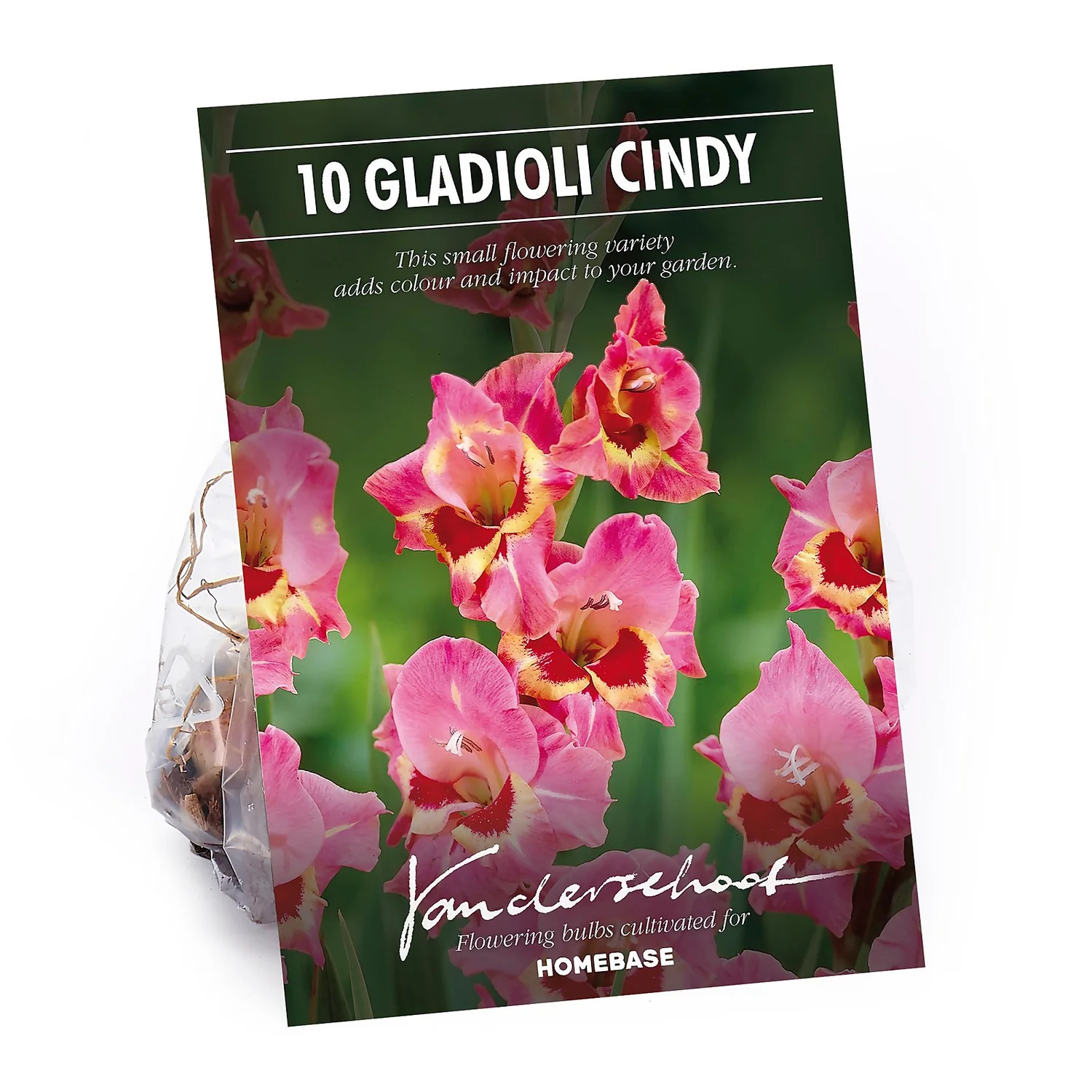 These gorgeous gladioli will add impact to your garden with their pale pink flowers with dark red heart centres.