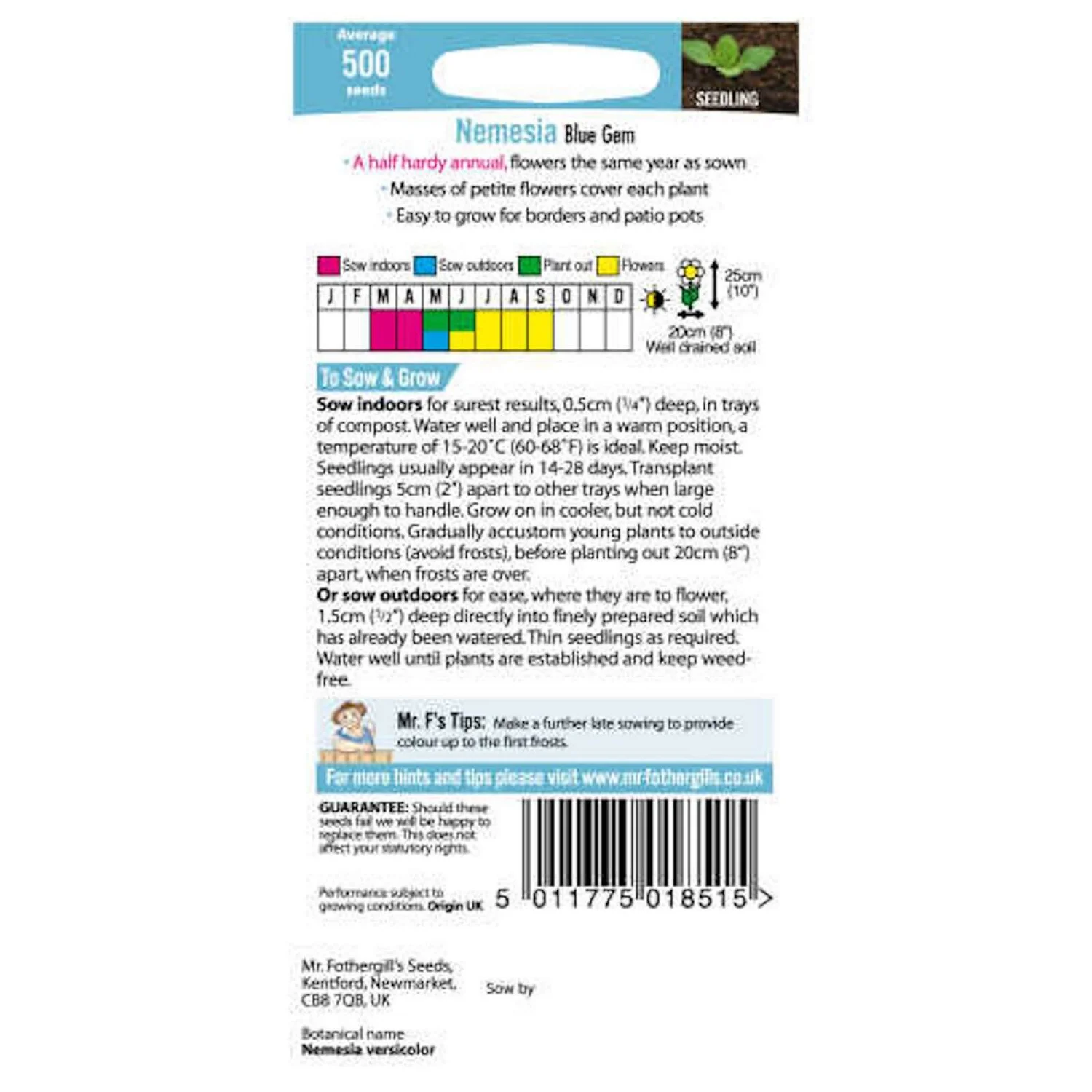 Mr. Fothergill’s Nemesia Blue Gem Seeds