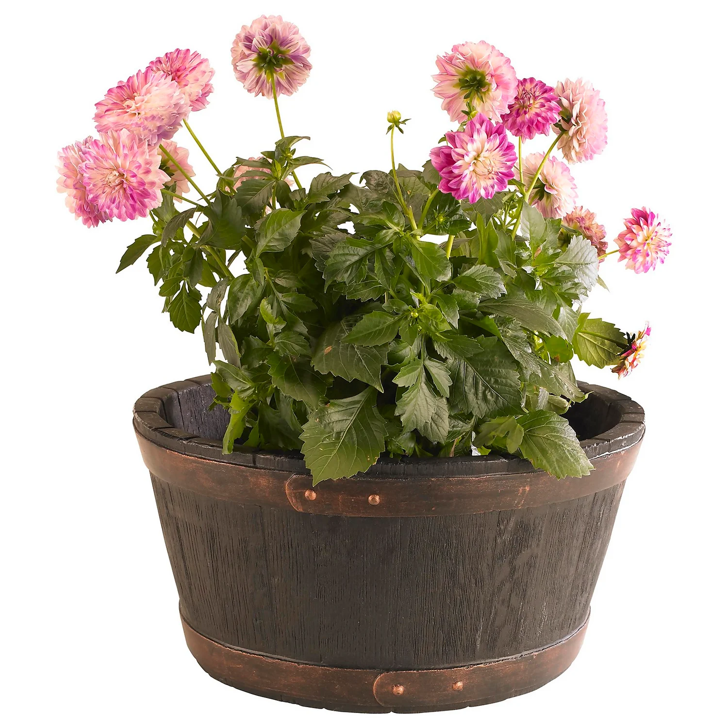 Give your plants a classic and vintage finish with this wonderful Oakwood effect Barrel Planter. The rustic wooden finish coupled with the classic brown colour offers a classic piece to support all your favourite plants and flowers. In addition, the plastic planter provides the same effect as wood but is much more durable.